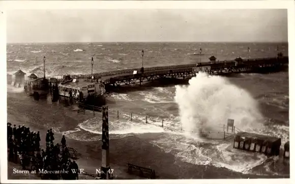 Ak Morecambe Lancaster Lancashire England, Pier, Sturm