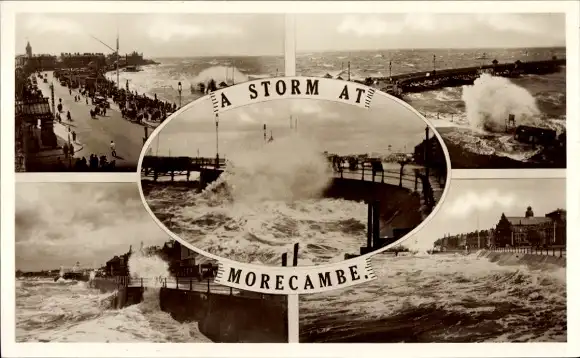 Ak Morecambe Lancaster Lancashire England, Pier, Sturm