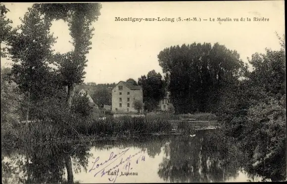 Ak Moret-sur-Loing Seine et Marne, Le Moulin vu de la Riviere