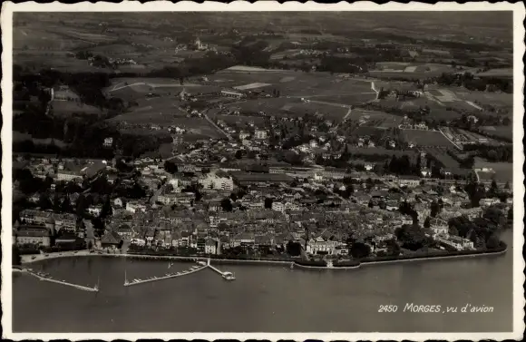 Ak Morges Kanton Waadt, Fliegeraufnahme