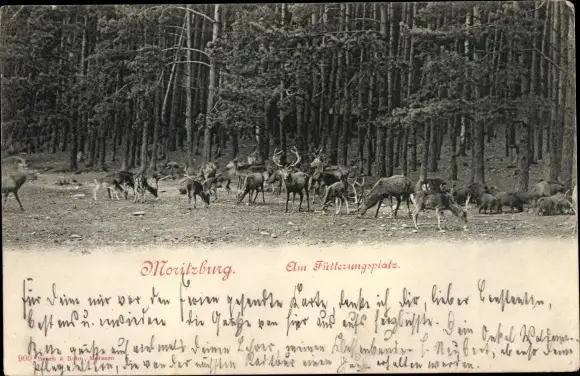 Ak Moritzburg in Sachsen, Am Fütterungsplatz, Rotwild