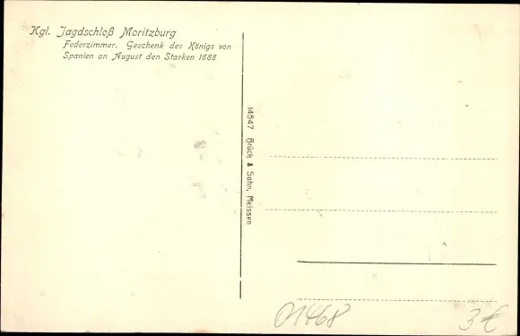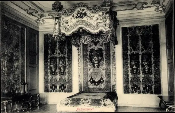 Ak Moritzburg in Sachsen, Jagdschloss, Federzimmer, Innenansicht
