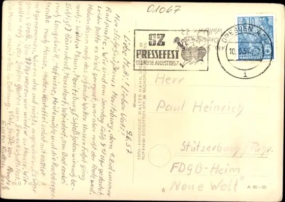 Zustand, siehe Scan, gelaufen, 1957 - ca 15 cm X 11 cm