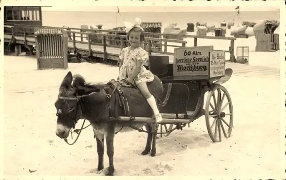 Ak Moritzdorf Sellin auf Rügen, Moritzburg, Strand, Eselkarre