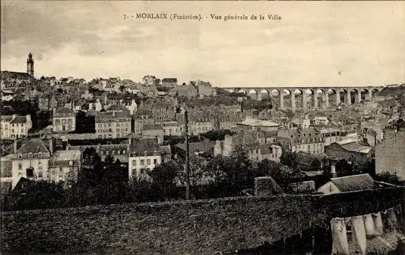 Ak Morlaix Finistère, Aussicht auf die Stadt, Viadukt, Häuser, Turm