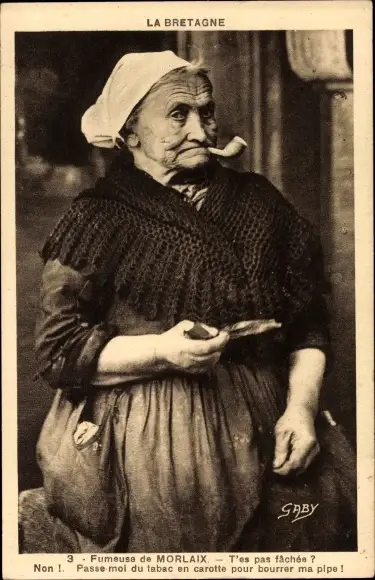 Ak Morlaix Finistère, Fumeuse, rauchende Frau in bretonischer Tracht