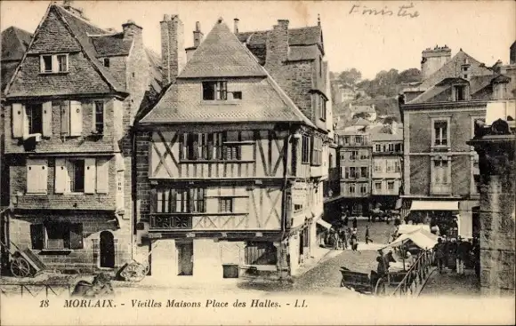 Ak Morlaix Finistère, Historische Gebäude, Platz des Halles, Stadtansicht, Finistère
