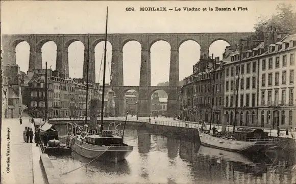 Ak Morlaix Finistère, Viaduc, Bassin a Flot