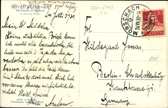 Ak Morschach Kt. Schwyz Schweiz, Hotel Bellevue