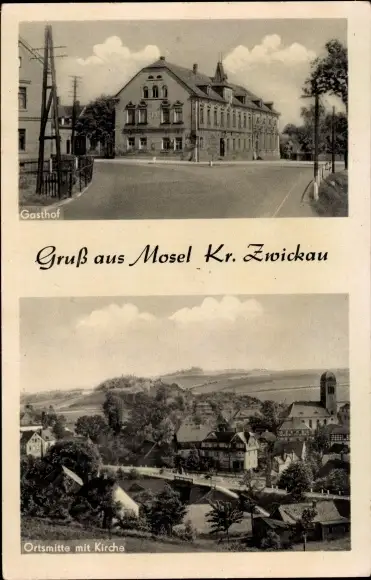 Ak Mosel Zwickau in Sachsen, Gasthof, Ortsmitte, Kirche
