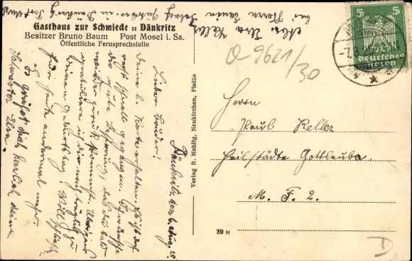 Zustand, siehe Scan, gelaufen, 1925- Bes. Bruno Baum - ca 14 cm X 9 cm