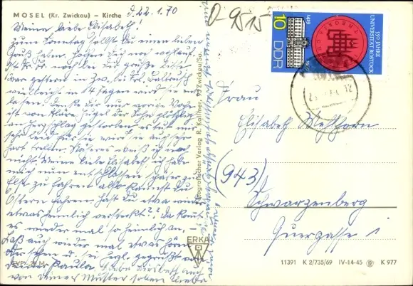 Ansichtskarte, Postkarte, Kirche, Stadtkirche, Gotteshaus, Sakralbau
