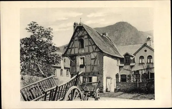 Ak Moselkern an der Mosel, Hauspartie, Fachwerkhaus, Wagen