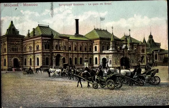 Ansichtskarte,Postkarte,Bahnhof,Bahnhöfe,Haltestelle,Hauptbahnhof,Station,Stadtbahnhof,Haltepunkt,Bahnstation,Moskau,Brest,Litowsk,Litauisch, Bres,Брэст,Берасьце,Bjeraszje,Brześć, nad, Bugiem,Брест,Brestas,Lietuvos, Brasta