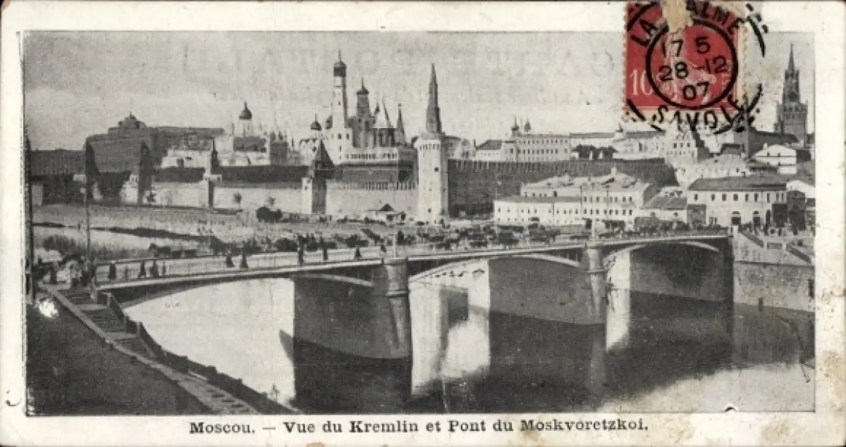 Ak Moskau Russland, Kreml, Moskvorezkoi-Brücke, Ansicht
