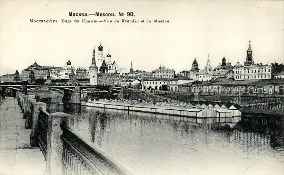 Ak Moskau Russland, Kreml, Moskwa Fluss, Brücke