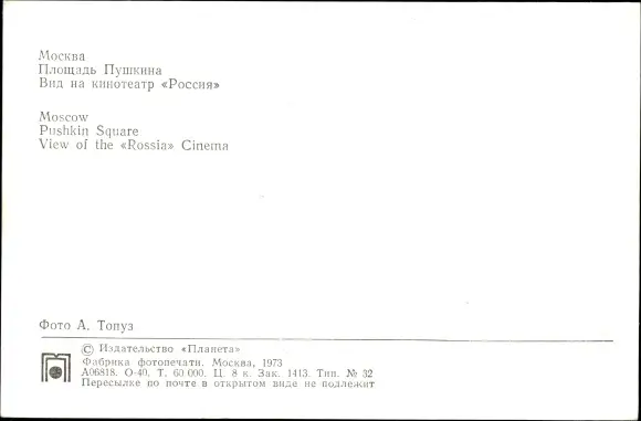 Ak Moskau Russland, Pushkin Square, Kino Rossia