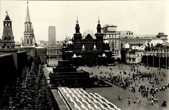 Ak Moskau Russland, Roter Platz, Kreml, Lenin Mausoleum, Besucher