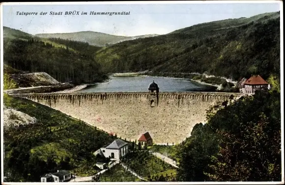 Ak Most Brüx Region Aussig, Talsperre im Hammergrundtal