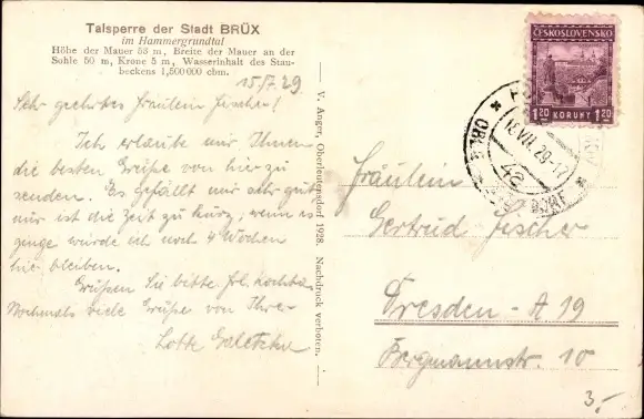 Ansichtskarte, Postkarte, Talsperre, Stausee, Staudamm, Staumauer, Aussig