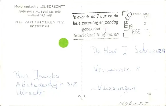 Ak Motor-Tankschiff Sliedrecht, PHs. Van Ommeren NV, Rotterdam