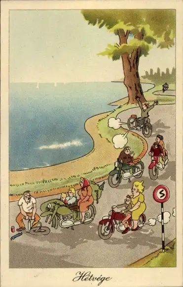 Ak Motorräder, Motorradfahrer, Panne, Reparatur