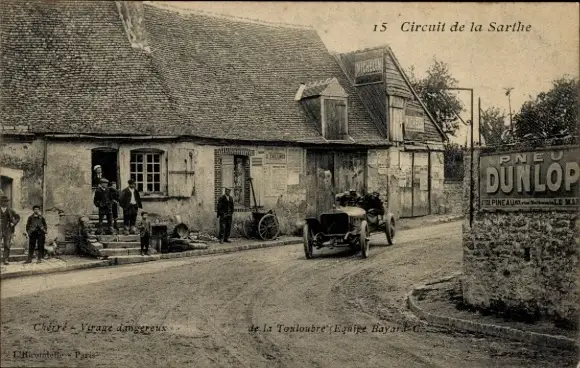 Ak Motorrennsport, Autorennen, Automobile, Dorfpartie, Dorfbewohner, Sarthe