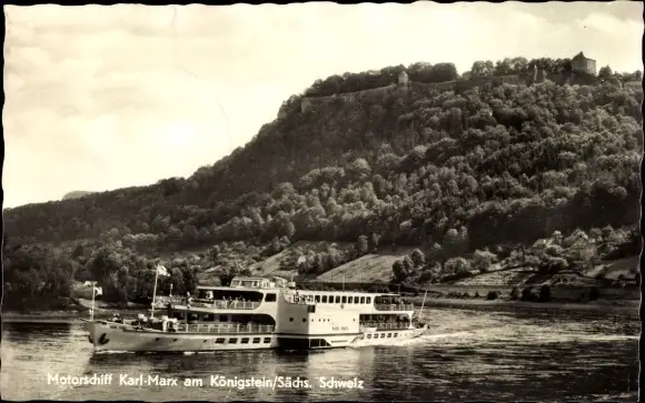 Ak Motorschiff Karl Marx am Königstein, Sächsische Schweiz, Elbe
