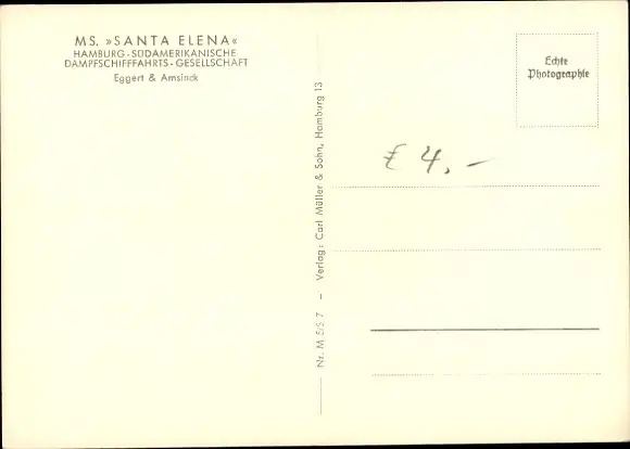 Ansichtskarte, Postkarte, HAPAG, Hamburg Amerika Linie