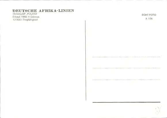 Ak Motorschiff Polana, Deutsche Afrika Linien