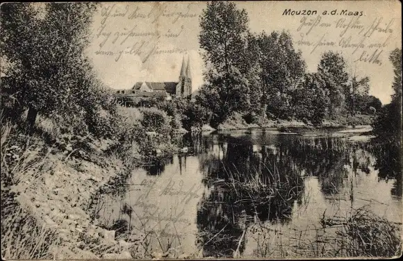 Ak Mouzon Ardennes, Partie an der Maas, Kirche