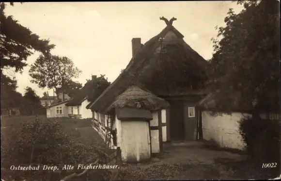 Ak Mrzeżyno Deep Pommern, Alte Fischerhäuser, Außenansicht