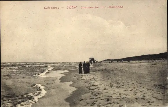 Ak Mrzeżyno Deep Pommern, Strandpartie mit Damenbad