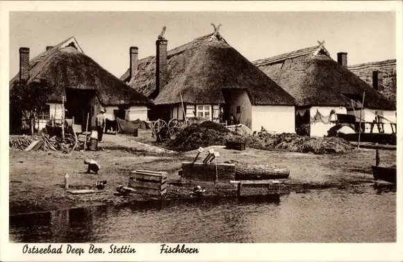 Ak Mrzeżyno Ostseebad Deep Pommern, Fischborn, Fischerhütten