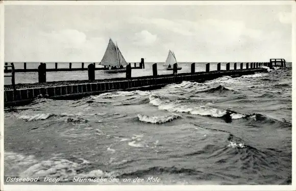 Ak Mrzeżyno Ostseebad Deep Pommern, Stürmische See, Mole