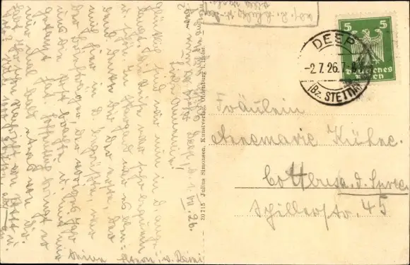 Zustand, siehe Scan, gelaufen, 1926 - ca 14 cm X 9 cm