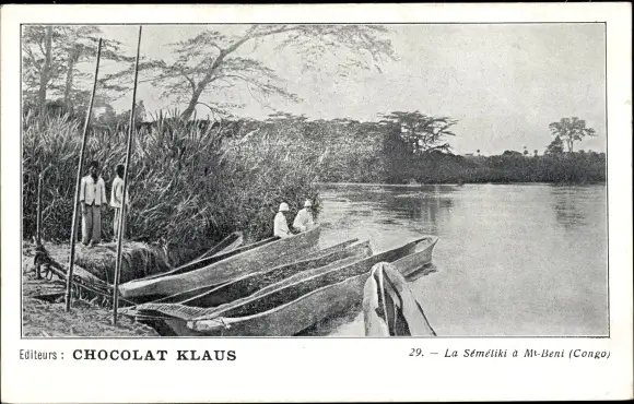 Ak Mt. Beni Kongo, Semeliki, Boote am Flussufer