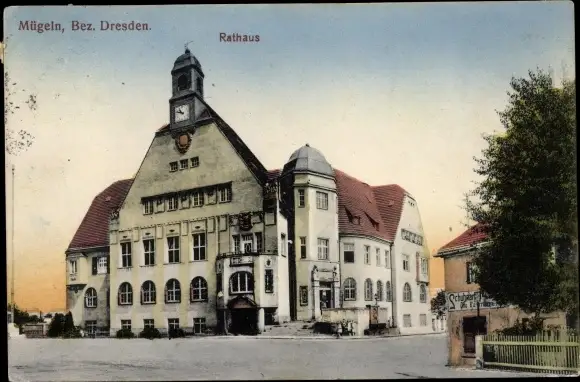 Ak Mügeln Heidenau in Sachsen, Straßenpartie mit Rathaus