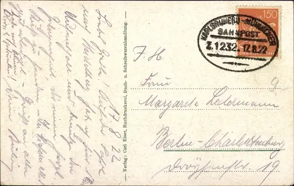 Zustand, siehe Scan, gelaufen, 1922 - ca 14 cm X 9 cm