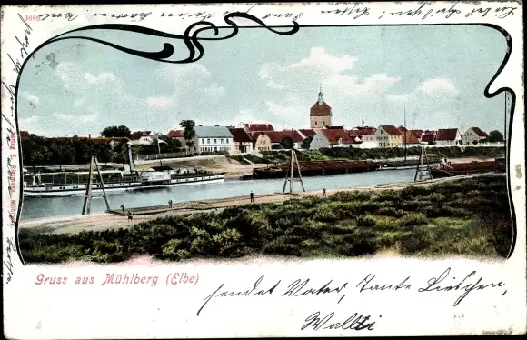Ak Mühlberg an der Elbe, Flusspartie, Salondampfer
