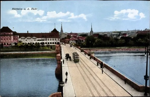 Ak Mülheim an der Ruhr, Brücke, Straßenbahn