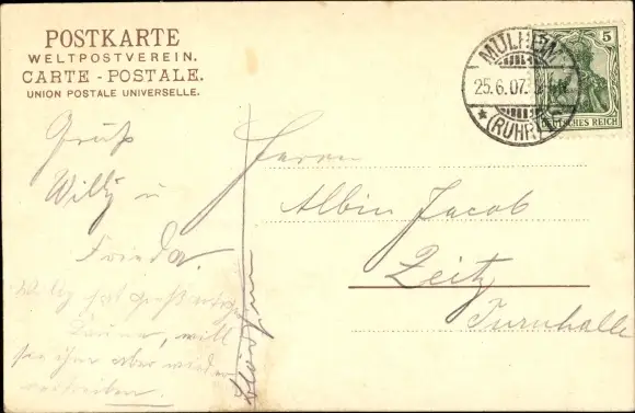 Zustand, siehe Scan, gelaufen, 1907 - ca 14 cm X 9 cm