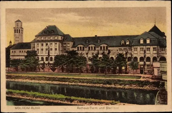 Ak Mülheim an der Ruhr, Stadtbad, Rathausturm