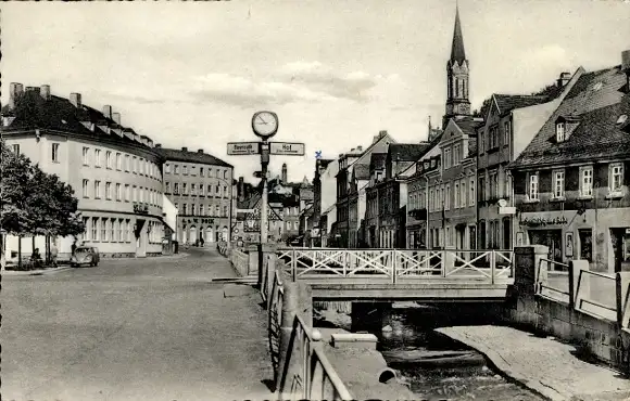 Ak Münchberg in Oberfranken Bayern, Straße, Wegweiser