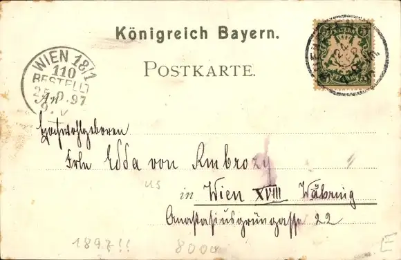 Zustand, siehe Scan, gelaufen, 1897 - ca 14 cm X 9 cm