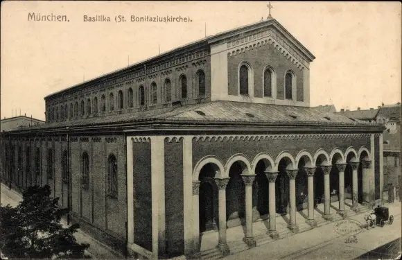 Ak München, Basilika, St. Bonifaciuskirche, Kutsche