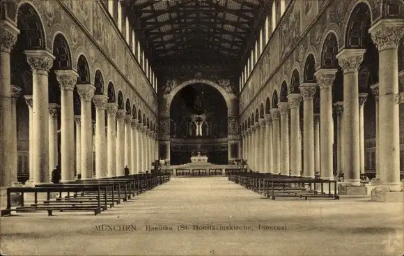 Ak München, Basilika, St. Bonifaziuskirche, Innenansicht