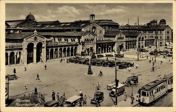 Ak München Bayern, Hauptbahnhof, Straßenbahn