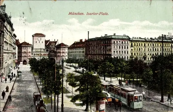 Ak München Bayern, Isartor Platz, Straßenbahn