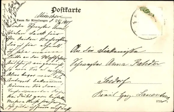 Zustand, siehe Scan, gelaufen, 1907 - ca 14 cm X 9 cm